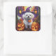 Spooky Bichon Frise Halloween Witch And Pumpkin Square Sticker