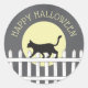 Spooky Black Cat on Picket Fence Classic Round Sticker