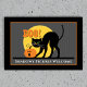 Welcome guests and trick-or-treaters with this customisable Halloween doormat. Featuring a spooky black cat with piercing green eyes, a glowing full moon, a cute carved pumpkin, and customisable typography that says, “Shadowy Figures Welcome,” this doormat is perfect for adding a personal touch to your Halloween decor. Add a name or your own text to create a one-of-a-kind doormat to greet friends, family, and trick-or-treaters in style.