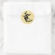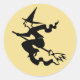 Fun, scary, spooky, creepy black flying witch, faux gold classic round stickers sheet. Perfect for halloween goodie bags, invites, cards, and more.