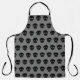 A simple black skull, repeated into a polka dot pattern. A spooky design, on a gray backdrop.