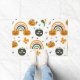 This whimsical and spooky-sweet design combines classic Halloween imagery with a modern, bohemian twist. Featuring a seamless pattern of smiling, jagged-toothed jack-o'-lanterns and mysterious, multi-eyed pumpkins, this artwork is perfect for adding a touch of festive fun to any product. Playful ghosts, swirling tendrils, and scattered stars float alongside earthy, retro rainbows, creating a unique and eye-catching aesthetic. The colour palette of burnt orange, olive green, and deep black on a clean white background makes it versatile for a variety of products, from home decor to apparel and party supplies. It's the ideal design for anyone who loves a blend of spooky charm and stylish, contemporary art.