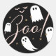 Spooky Boo! Halloween Ghost & Bats Black Classic Round Sticker
