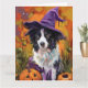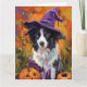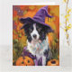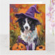 Spooky Border Collie Halloween Witch And Pumpkin Card