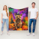 Spooky Cairn Terrier Dog Halloween Witch Pumpkin Fleece Blanket
