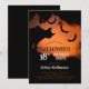 Spooky cat silhouette on an orange night sky underneath a tree among swarming bats creepy Halloween 18th Birthday Party invitation. Photo courtesy Saso Tusar via Unsplash.