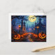 This awesome postcard features a haunted graveyard aligned with well-lit pumpkins.