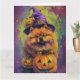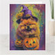 Spooky Chow Chow Dog Halloween Witch And Pumpkin Card