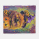 Spooky Chow Chow Dog Halloween Witch And Pumpkin Fleece Blanket