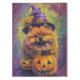 Embrace the Halloween spirit with this enchanting design featuring a cute dog in a witch hat surrounded by carved pumpkins. Perfect for adding a touch of spooky charm to your festive celebrations.