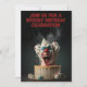 Make your celebration unforgettable with this spooky clown birthday invitation! Featuring a creepy clown bursting from a birthday cake, this design perfectly blends horror and fun — ideal for Halloween parties, scary movie fans, or anyone who loves a thrilling twist on a classic birthday. The back is fully customizable with your party details, making it easy to personalize for any age or event.