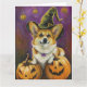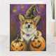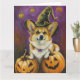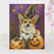Spooky Corgi Dog Halloween Witch Pumpkin Card