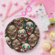 Here is some ai art depicting some creepy scary clowns with sharp teeth birthday or Halloween party paper plates.