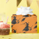 Cute and adorable watercolor art of a black witch flying on a broomstick. A pattern of witches to celebrate Halloween birthdays and other events. Orange and black colour theme.
