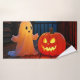 Welcome the Halloween season with this adorable scene! A friendly, glowing ghost stands beside a grinning jack-o'-lantern, creating the ultimate spooky-cute porch vibe. This charming image captures the warm glow and innocent fun of an autumn night. The design was initially generated by AI and then expertly edited by a skilled artist to enhance its uniqueness and seasonal creativity. Perfect for bringing cosy, whimsical cheer to your home. Place your order today and embrace the joy of shopping for this delightful fall style!