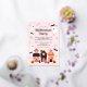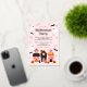 The cute illustrated design in pink, orange, black and red is perfect to add a touch of magic to your Halloween celebration. The back of the invitation has an adorable pattern with the same illustrations.