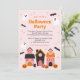 The cute illustrated design in pink, orange, black and red is perfect to add a touch of magic to your Halloween celebration. The back of the invitation has an adorable pattern with the same illustrations.