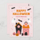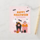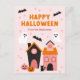 Adorable Halloween Haunted Houses Postcard design with spooky houses, jack-o'-lanterns, ghosts, black cats and bats. You can personalise it with your name.