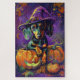 Spooky Dachshund Dog Halloween Witch And Pumpkin Jigsaw Puzzle