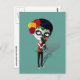Halloween Scary Girl. Spooky Catrina Girl with emo fashion style. She has face painted like a Mexican sugar skull. She has roses in her hair and she hold cute black Halloween cat. She is amazing Halloween girl ready for night of trick or treat.