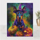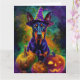 Spooky Doberman Dog Halloween Witch And Pumpkin Card