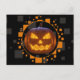 Spooky Evil Pumpkin Orange Black Grey Halloween Postcard