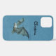 This iPhone case is a patterned blue with a spooky blue bat with a white face with its wings spread in flight. Customise your name or text with the template.