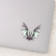 This vinyl sticker has a spooky flying white bat that has a green glow and its wings spread.