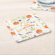 Protect your surfaces in spooky style with this adorable Halloween paper coaster! Featuring a bright and playful pattern of smiling pumpkins, friendly skulls, spiderwebs, candy, stars, and fun phrases like “Trick or Treat?”, “Spooky”, “Creepy”, and “Happy Halloween”, this coaster is perfect for Halloween parties, fall gatherings, and seasonal entertaining.