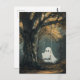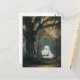 Send a hauntingly beautiful greeting this autumn. This postcard features a lonely ghost swaying on a swing in a misty, colourful forest. It's the perfect way to send spooky season wishes, say 'Happy Halloween,' or even use as a mini art print for your desk. A charmingly spooky piece for any fall lover.