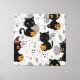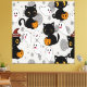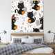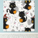 Fun and spooky Halloween vibe with cute cartoon black cat surrounded by playful and friendly.