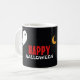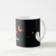 Cute cartoon ghosts wandering over the rooftops at halloween night