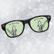 These retro party glasses are green with a spooky girl in a black and purple dress with greenish black hair and a bright green hat. Customise your text with the template.