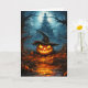This card features a sinister looking haunted house guarded by a pumpkin. Please feel free to edit the text to make this Halloween card personal and one of a kind.
