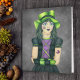 Spooky Goth Girl Green Hat Purple Black Dress Grey Card