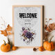 Simple grey design featuring gothic spooky skull and roses on a spider web.