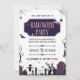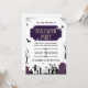 You're invited to a hauntingly good time this Halloween! This spooky and stylish invitation sets the perfect scene for a classic Halloween bash. The design features a creepy graveyard silhouette at dusk, complete with a scarecrow, tombstones, gnarled trees, and bats in flight. Accented with spiders and elegant typography in a purple and black colour scheme, this invitation is perfect for a memorable monster mash. All the party details are fully customisable to summon your guests!