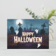 Create the ultimate spooky vibe with this Halloween invitation featuring a moonlit graveyard and ghosts.
