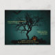 Postcard is a stunning Halloween party invitation shows a leafless tree, a flying black bat, and a glowing orange pumpkin beneath the tree. The background is green, distressed grunge. Create a spooky, eerie mood with this invite. The text is customisable. Personalise it to make it your own.