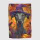 Spooky Greyhound Dog Halloween Witch And Pumpkin Golf Towel