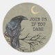 Add the perfect creepy finishing touch to your Halloween correspondence with these stickers featuring an illustration of a black raven perched on a barren tree branch below a crescent moon. Customise the text by using the easy provided templates. Text reads 'Join us if you dare' - but can be changed to whatever you need - a monogram, 'Thank You', 'BOO!' ... you decide! If no text is desired, simply delete.