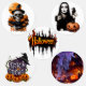 Celebrate the spookiest season with this circular Halloween design featuring a haunting skull surrounded by pumpkins and eerie accents. Perfect for stickers, badge prints, clothing emblems, or seasonal decorations — add a ghostly touch to your Halloween collection.