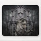 A haunted house guarded by a demon on a cool mouse pad for Halloween or anytime.