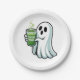 Spooky Halloween Ghost Drinking Matcha Drink Paper Plate