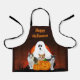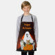 This costume like apron was created for kids to wear for crafts, cooking, or for other activities. The apron features a spooky graveyard design with stray cats, Jack O lantern, ghost, and a harvest moon. If you prefer another size apron then click onto all options to view adult-sized.