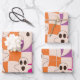 Spooky Halloween Ghosts on Checkerboards Pattern Wrapping Paper Sheet