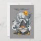 Celebrate Halloween with this spooky yet adorable greeting card featuring a Halloween-themed gnome standing in front of a haunted graveyard scene. The gnome, with his iconic long beard and pointed hat, holds a staff topped with a skull, adding to the eerie atmosphere. A crow perches on a tombstone while a bright orange moon with flying bats lights up the background, creating the perfect Halloween night scene. The message "Happy Halloween!" is printed at the top in a whimsical font, making this card both charming and festive.This card is perfect for sending Halloween wishes to friends and family, or even as a decorative piece to enhance your holiday decor. The high-quality print on sturdy cardstock ensures that your message will be delivered in style. Whether you're giving it to a loved one or keeping it for yourself, this Halloween gnome card is sure to bring a smile to anyone who receives it.