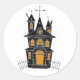 Spooky Halloween haunted house fence black orange Classic Round Sticker