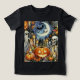This Halloween-designed t-shirt features a creepy image with jack-o'-lanterns, skeletons, and more. It's shown on a black t-shirt, but other colours and styles are available to choose the perfect tee for your Halloween needs. The artwork is AI-generated with design direction by Susang6.