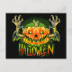 Spooky Halloween Neon Bat Pumpkin Postcard